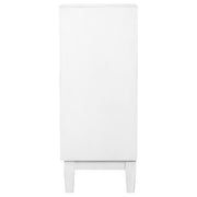 This two-door cabinet adds subtle charm with its crisp white finish and sculpted geometric door fronts. The raised honeycomb-inspired texture brings dimension and interest to the façade, while lightly distressed edging offers a softly weathered touch. Inside, an adjustable shelf allows for flexible storage. Its clean lines and sculptural surface make this cabinet an ideal accent for transitional, coastal, or eclectic interiors. Key Features: • Two-door cabinet with sculpted geometric fronts for textured visual appeal • Raised honeycomb-inspired surface adds sculptural dimension to the design • White painted finish with light distressing for a softened, weathered look • One adjustable interior shelf accommodates varying storage needs • Clean silhouette works across coastal, transitional, and eclectic styles • Crafted from durable materials for everyday storage and display needs