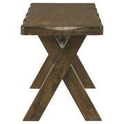 Rustic warmth and timeless craftsmanship define this inviting dining collection. Built from solid rubberwood in a knotty nutmeg finish, each piece showcases organic wood grains and hand-planed edges that lend a handcrafted feel. The rectangular table’s trestle-style X-base adds a modern farmhouse touch, while the ladder-back chairs feature padded fabric seats for everyday comfort. Designed to bring people together, this collection blends durability, charm, and relaxed sophistication for any dining space. Key Features: • Rectangular dining table crafted from solid rubberwood in a knotty nutmeg finish • Ladder-back chairs with padded fabric seats provide comfort and rustic charm • Hand-planed tabletop edges create an artisanal live-edge look • Durable polyester-cotton blend upholstery ensures long-lasting use • Trestle-style X-base adds structure and modern farmhouse character • Perfect for casual or formal dining spaces with timeless appeal