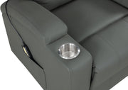 This power lift recliner delivers premium comfort and functionality, perfect for relaxing in style. The chair features luxurious faux leather upholstery and an ergonomic design to support your body at every angle. The power lift mechanism ensures easy movement in and out of the chair, offering assistance for standing or sitting with minimal effort. With integrated cup holders and side storage pockets, convenience is at your fingertips. The chair also includes massage and heat functions, allowing you to unwind and soothe your muscles after a long day. The wired remote control provides effortless operation of all features, from reclining to massage intensity. Key Features: • Power lift recliner with heat and massage functions offers comfort and support with ergonomic contouring • Faux leather upholstery delivers a sleek look with a smooth, easy-clean surface and soft touch • Integrated lift mechanism assists with sitting or standing for enhanced daily accessibility and ease • Dual cup holders and side storage pockets keep remotes, drinks, or essentials within arm’s reach • Wired remotes control recline, lift, heat, and massage features with intuitive button operation • Built from heavy-gauge metal and engineered wood for lasting structure and supportive durability