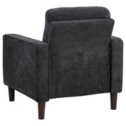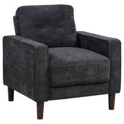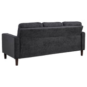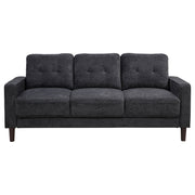 Simple yet thoughtfully detailed, this sofa set brings comfort and structure to compact spaces. Slim track arms with cord welt trim frame grid-tufted back cushions, while soft, textured upholstery creates a relaxed and inviting feel. Pocket coil seating offers lasting support, and tapered round legs provide a lifted foundation. Tailored and timeless, this collection is ideal for studio living or any room in need of space-conscious comfort. Key Features: • Sofa set with slim track arms and grid-tufted backs for clean lines and visual structure • Rust fabric adds soft texture and a versatile neutral tone to any room • Cord welt trim provides a tailored finish along arms and cushions • Pocket coil seating construction delivers consistent comfort and long-term support • Soft polyester upholstery is smooth, easy to care for, and family-friendly • Tapered round legs offer a stable, mid-century inspired lift to each piece
