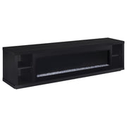 This sleek fireplace media console brings warmth and streamlined storage to contemporary living spaces. A wide electric firebox glows over crushed acrylic crystals, offering fifteen customizable flame colors operated by a wireless remote. Open side compartments with adjustable shelves store devices or décor, while rear cable management cutouts keep wires out of sight. Finished in classic black and crafted from engineered wood with a laminate veneer, it serves as a refined TV stand or entertainment center. Please note that this console does not include a heat function. Key Features: • TV stand fireplace console with flame visualizer and crushed acrylic crystals for visual warmth • Black finish highlights clean lines and adds bold, modern character to any space • Two open side compartments with adjustable shelves offer flexible display or storage • Fifteen flame colors with wireless remote control for lighting customization • Crafted from engineered wood and durable, scratch-resistant laminate veneer • Accommodates TVs up to eighty-five inches with rear cutouts for cable management