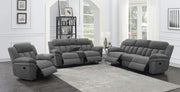 Sink into the cozy comfort of this manual glider recliner, upholstered in soft charcoal fabric. Designed with wide pillow arms and a plush backrest, this recliner features supportive pocket coil seating and a cool gel memory foam layer to enhance breathability and long-lasting relaxation. Its smooth gliding motion and inviting profile make it the perfect addition to any casual living space or entertainment room. Key Features: • Manual glider recliner offers smooth motion and effortless relaxation • Upholstered in durable charcoal fabric for a soft, modern feel • Wide pillow arms and plush headrest enhance comfort and support • Cool gel memory foam topper keeps the seat breathable and cool • Built with pocket coil seating for long-lasting support and durability • Ideal for casual living rooms, dens, or entertainment lounges