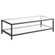 Sleek and contemporary, this coffee table pairs a black nickel electroplated frame with clear tempered glass surfaces. Its spacious tabletop and matching lower shelf provide ample room for storage or display, ideal for modern living spaces. The minimalist open-frame design adds a light, airy feel, while the durable tempered glass ensures long-lasting use. Perfect for complementing various interior styles, this table offers functionality and elegance in equal measure. Key Features: • Coffee table with tempered glass top and lower shelf for versatile use • Black nickel electroplated steel frame offers a sleek, modern finish • Spacious lower shelf provides convenient storage or display space • Clear tempered glass ensures durability and added safety • Open-frame design enhances the table's minimalist, airy appearance • Fits seamlessly with contemporary and transitional interior styles