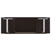 Enjoy an intriguing architectural design in this office desk. A floating top creates a visually enticing effect and a completely different look. Finished in cappuccino, it flatters surrounding decor and delivers a dramatic touch. Store essentials in a cabinet and drawer, and use a file cabinet to organize papers. Contrasting silver hardware and steel legs plays up the contemporary flavor of this stylish desk. Key Features: • Classy office desk in cappuccino finish • Clean metal base in silver finish • Simple desk includes one (1) storage cabinet, one (1) storage drawer, and one (1) file cabinet • File cabinet holds both legal and letter size files • Metal, MDF, particle board, and laminate construction