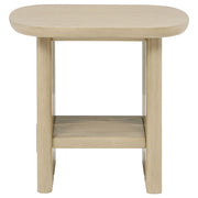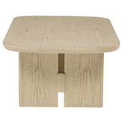 This coffee table set embodies California coastal modern design, blending authenticity with relaxed sophistication. Each piece features a sculpted underside and gently rounded edges, creating a light yet substantial presence. Built from solid poplar, engineered wood, and oak veneer in a beige oak finish, the set offers natural warmth and enduring strength. A spacious cocktail table pairs beautifully with matching end table featuring a lower shelf for versatile function and timeless style. Key Features: • Coffee table set includes matching cocktail and end table in a coastal modern silhouette • Occasional tables feature sculpted undersides and softly rounded edges for a refined look • 70s-inspired geometric base design enhances visual interest and stability • Crafted from solid poplar, engineered wood, and oak veneer for lasting durability • Rectangular coffee table offers a generous surface for beverages and décor display • End table includes a lower shelf for practical storage and versatile living room use