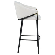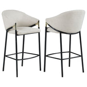 This pair of two stools offer a Hollywood regency look. With a tall and sleek design, the legs come in a glossy black finish that lends to many color palettes and offers a handsome look. Each stool has a cushioned seat, wrapped in a linen-like fabric that is soft to the touch. Plus, lean back and relax between sloped arm rests and a curved high back as you sip cocktails and chat with guests. Capping each arm rest is a gold accented piece that adds a glamorous touch. Key Features: • Tall and sleek design with glossy black finish for versatile color palettes and handsome look • Cushioned seat wrapped in linen-like fabric for soft touch and comfort; sloped arm rests and curved high back for relaxation • Gold accented pieces on arm rests for glamorous touch • Hollywood regency look perfect for sipping cocktails and chatting with guests • Sturdy construction for long-lasting use