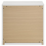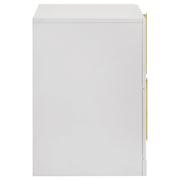 Bold in its simplicity, this two-drawer nightstand captures modern Italian influence with practical functionality. The white high gloss finish is made with eco-friendly PET thermoplastic, offering a surface that resists scratches, moisture, and heat. Vertically mounted polished gold pulls create a sculptural focal point, while two drawers provide easy-access storage beside the bed. Arrives fully assembled for instant style and utility. Key Features: • Two-drawer nightstand with bold vertical symmetry and clean modern proportions • Eco-friendly PET thermoplastic finish is scratch-resistant and easy to maintain • PET surface resists moisture and heat, ideal for long-lasting bedside durability • Polished gold pulls are vertically mounted for elegant sculptural contrast • Smooth-gliding drawers provide convenient storage for nighttime essentials • Fully assembled and crafted with engineered wood for strength and stability