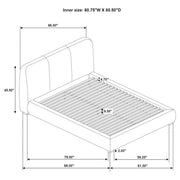 Softly sculpted and thoughtfully tailored, this upholstered platform bed brings a quiet elegance to modern sleep spaces. Its curved silhouette flows from a gently flared headboard to rounded side rails, offering a sense of movement and ease. Three stitched panels add subtle dimension, while the built-in slat system provides durable mattress support without the need for a foundation. Crafted from solid and engineered wood, it balances sculptural form with everyday comfort. Key Features: • Queen platform bed with curved lines and stitched headboard for soft modern design • Taupe fabric upholstery offers warm texture with a clean, neutral visual tone • Sculpted frame flows from the rounded headboard to the low-profile foot rails • Slatted base eliminates the need for a foundation or box spring beneath mattress • Crafted from solid wood, engineered wood, foam, and upholstered in soft fabric • Perfect for modern bedrooms seeking balance between form, texture, and function