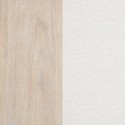 A quiet invitation to rest, this panel bed evokes the calm of coastal mornings and the grace of timeless design. Its tall headboard, wrapped in creamy fabric and framed by washed oak, offers a gentle contrast of texture and tone. A delicate row of nailhead trim glimmers like a finishing touch, while raised panel detailing at the footboard adds poised refinement. Crafted with care from oak veneer, poplar, and soft upholstery, this bed brings serenity and structure to the heart of the bedroom. Key Features: • Queen panel bed with cream upholstered headboard and tailored nailhead trim • Washed oak frame brings soft wood grain texture and coastal-inspired warmth • Tall headboard design adds graceful height and timeless visual impact • Raised panel footboard enhances structure with classic architectural detail • Requires foundation beneath mattress for complete support • Crafted from poplar, engineered wood, oak veneer, and fabric for lasting elegance