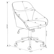 Wrapped in soft and smooth leatherette, this modern office chair features contoured edges for an elegant, contemporary silhouette. Lean against the supportive, comfortable backrest as you focus on work and other tasks. The seating also features a pintuck design and sloped armrests that lend a clean look that is easy on the eyes. Supported by a five-caster wheelbase in a polished chrome finish, this office chair glides across the floor to retrieve office supplies and effortlessly slides beneath a desk at the end of the day. A pneumatic lift also allows you to adjust the height for a more ergonomic seating position. Key Features: • Wrapped in soft and smooth leatherette, this modern office chair features contoured edges for an elegant, contemporary silhouette with a pintuck design and sloped armrests • Supportive and comfortable backrest allows you to lean against it while focusing on work • Five-caster wheelbase in a polished chrome finish glides across the floor and slides beneath a desk • Pneumatic lift allows you to adjust the height for a more ergonomic seating position • Eyes-pleasing design with clean look