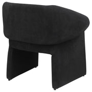 Upgrade the designer style of your living space with the ingenious silhouette of this modern accent armchair. Designed to impress, it features a classic stance with beautifully curled arms that capture attention without overwhelming. The lovely design is complemented with the organic texture of beautiful upholstery fabric, in a neutral hue that sets the tone for your space. The chair features foam cushioning with a streamlined look, perfectly enhancing its gentle curves and slopes. Add it to an existing seating group for eclectic flair, or choose a pair for a cozy ambiance. Key Features: • Charming folded arm design is artistic and modern on a contemporary accent chair • Fabric upholstery has a suede-like look and feel, offering organic texture and depth • Gently sloping armrests complement a low back and padded seat to create visual depth • Neutral upholstery color sets the tone in your inviting living area, den, or bedroom • Legs feature levelers to ensure that the chair doesn't rock or move unexpectedly
