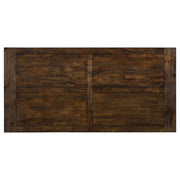 A dining table that's solidly built with clean, crisp lines is what any home could use. This warm rectangular table has an enduring appeal. Sitting on four sturdy, square-shaped legs, it conveys character and reliability. Put six to eight ladder-back chairs around the table for an unforgettable gathering. This table is at home in a formal dining space or in a rustic style cabin. Key Features: • Solid rubberwood showcases various knots and grain details for a rustic country look • Rustic golden brown finish adds country character with a reclaimed wood feel • Classic farmhouse style with simple lines give a timeless handcrafted feel • Comfortably seats 8 for those family dinners and special occasions • Matching counter height dining set is also available