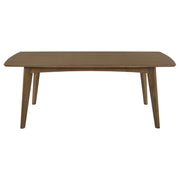 The Malone Collection unveils this mid-century modern rectangular dining table. Fashioned from walnut veneers and finished in rich dark walnut color. Angled legs and solid construction make for durability and sturdiness. As perfect for a cabin in the woods as for a contemporary loft in the city center. Complete the set with corresponding contemporary chairs (sold separately). Key Features: • Rectangular dining table crafted in mid-century modern style • Dark walnut finish enhances warm, timeless aesthetic • Angled legs provide stability and classic design appeal • Constructed from solid rubberwood, engineered wood, and walnut veneer • Spacious 78-inch surface accommodates larger gatherings comfortably • Supports up to 300 pounds for reliable everyday use