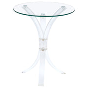 This contemporary side table exudes sophistication with its clear acrylic legs and tempered glass top. The round top is crafted from durable, scratch-resistant tempered glass, offering a sleek and practical surface for your living space. The clear acrylic legs create an airy, modern aesthetic while providing sturdy support. Perfect as a side table or accent table, this versatile piece blends seamlessly into contemporary and minimalist interiors. Key Features: • Round side table with a clear tempered glass top for strength and modern appeal • Clear acrylic legs enhance the design with an airy and contemporary look • Tempered glass top offers scratch-resistant durability and easy maintenance • Lightweight yet sturdy construction ensures stability and long-lasting use • Ideal size for use as a side table or accent piece in modern spaces • A chic and versatile addition to any minimalist or modern decor