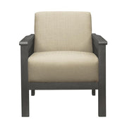 Designed with inspiration from the Arts & Crafts movement, the Lewiston Collection will be a classic addition to your home’s décor. The chair's transitionally styled legs and vertical slat-supported wood arms are finished in an antique gray, providing complementing contrast to the brown linen-like fabric covering.