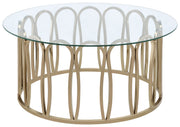 This round coffee table features a clear tempered glass top supported by a durable metal frame. The base is finished in a striking electroplated chocolate chrome, providing a deeper, rich brass tone. With its sleek design, this coffee table is an ideal addition to any living room or lounge area, offering both elegance and stability. The metal frame provides a modern touch, while the tempered glass top ensures long-lasting durability and ease of maintenance. Key Features: • Round coffee table with a clear tempered glass top for durability and style • Electroplated chocolate chrome metal frame with a polished, sleek finish • Base showcases a chic geometric design with smooth, curving lines for appeal • Strong and durable metal frame offers excellent support and long-term stability • Clear tempered glass top makes it easy to clean while adding a modern touch • Perfect for the living room or lounge area, blending functionality and elegance