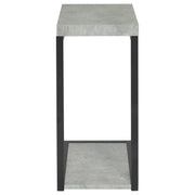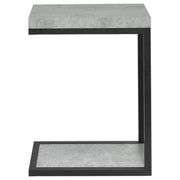 This modern side table combines industrial style with practicality, featuring an engineered wood top and base in a sleek cement-like finish. Its minimalist metal frame is coated in a durable black powder-coated finish, offering both strength and contemporary appeal. Perfect for small spaces, this end table provides functionality while maintaining a clean, open design that easily pairs with a variety of living room decor. Key Features: • Stylish side table with an engineered wood top and base for durability and function • Cement-like finish adds an industrial, modern aesthetic to the design • Sleek metal frame in a durable black powder-coated finish for lasting quality • Compact and versatile, ideal as an end table for tight spaces or beside furniture • Open-frame design maintains an airy, minimalist appeal for modern interiors • Perfect for holding essentials, from drinks to books or decorative accents