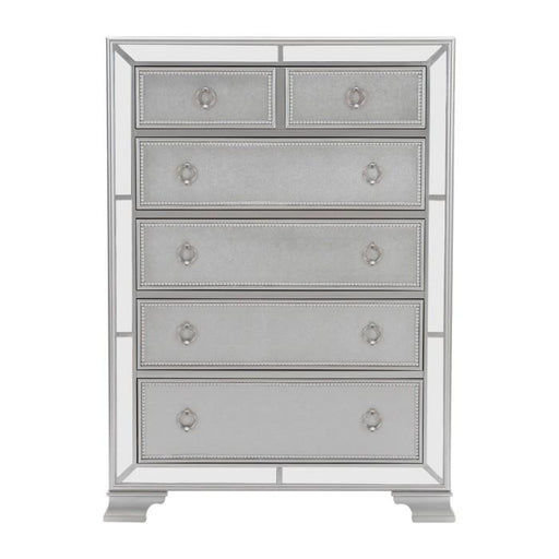Avondale Collection by Homelegance Furniture Silver finish Made of manmade veneer veneer, wood and glass Beveled mirror frame 6 dovetailed draw...