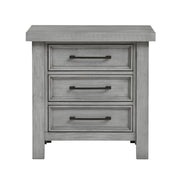 The transitional framing of the Logandale Collection allows for versatile placement within a number of classic bedroom decors, making a perfect choice for your home. An antique gray finish is utilized over mango veneer for subtle highlighting of its distinct grain. Dark finished metal knob and pull hardware front each drawer of the nightstand, creating a complementing accent to the collection.