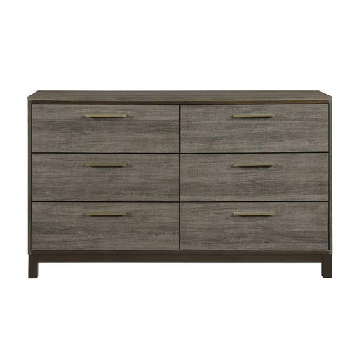 Vestavia Collection by Homelegance Furniture Gray finish Faux wood Clean lines Horizontal brushed nickel hardware Offered in both adult and youth ...
