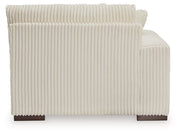 Plush and posh. Showcase your eye for on-trend texture with the statement-making cord upholstery of this sectional. Its stunningly soft fabric entices in a warm neutral hue, complementing contemporary color palettes. Sink into the cushions and plan to stay a while—this cozy living room centerpiece highlights your high-end approach to comfort and style.