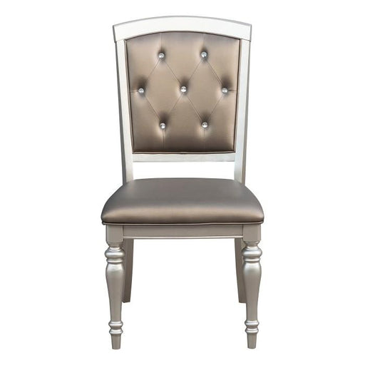 Orsina Collection by Homelegance Silver finish Wood frame Vinyl (faux leather) upholstered seat and back Crystal Tufting back Assembly required So...