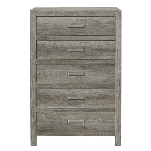 Mandan Collection by Homelegance Furniture Weathered Gray finish Made of faux wood veneer, wood and engineered wood 5 Drawers with metal on metal ...